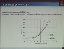 もう1つのファイルフォーマットとしてMP4もサポートしており、解像度3,840×2,160のUHD画質での収録に対応。幅広いダイナミックレンジを表現できるように、CanonLog、CanonLog3、ワイドDRガンマの3種類のLog撮影フォーマットを搭載している。
