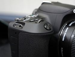 モードダイヤルを埋め込み式にするなど凹凸を抑えた滑らかなフォルムのデザインを採用。電子ダイヤルを緻密なローレット形状にしたり、グリップにシボを採用するなどで高級感も演出している。また、グリップ部分を深くすることで、小型でもしっかりと扱える操作性も実現したとしている。