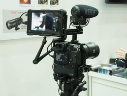 富士フイルムブースでは、2月15日に発表したフルサイズ一眼レフ「X-H1」(関連ニュース)のタッチ&トライを開催。動画用フィルムシミュレーション「ETERNA」をはじめとして動画性能を大幅に強化したモデルで、過酷な撮影環境にも対応する耐久性と、非常に軽くシャッターが切れる「フェザータッチシャッター」など操作性も兼ね備えた機種となっている。