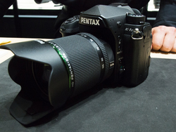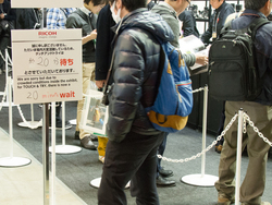 リコーブースでは、ペンタックスブランドから2月22日に発表されたフルサイズ一眼レフ「K-1 Mark II」(関連ニュース)のタッチ&トライを開催。手ブレ補正を動作させつつ超解像映像を撮影できる「リアル・レゾリューション・システムII」を搭載している。来場者1人につき説明員が1人つくマンツーマン体制で、機種に関する疑問を尋ねつつ試し撮りを楽しむことができた。