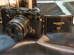 参考出展として、既存ミラーレス一眼の外装に手を加えた「スチームパンク」デザインと、ボディをすべてカーボン素材として軽量化を図り、デザインにもこだわった「PEN-F Special Edition」を公開。メーカー各社の技術力が高まり性能面で拮抗する製品が増えてきた中で、「性能以外の新しいカメラの楽しみ方の提案」として企画したものという。