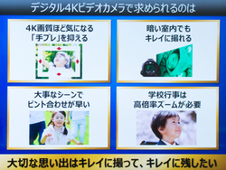 4Kテレビの出荷台数が増加し、各家庭の視聴環境が大画面化する中生まれた「記録も高画質で行いたい」というニーズに応えた新モデル。「HC-WXF1M」はモニター部のサブカメラ、ファインダーを備えた最上位モデル、「HC-WX1M」はファインダーを省いたレギュラーモデル、「HC-VX1M」はサブカメラやマニュアルリングを省いたスタンダードモデル、「HC-VX990M」は4Kを簡単に撮影できる機能をフィーチャーしたエントリーモデルとなる。