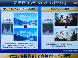 コントラストに乏しいシーンや逆光シーンを自動調整する「インテリジェントコントラスト」も搭載し、マニュアル操作なしでも使いやすく綺麗に撮影できる機能を取り揃えている。