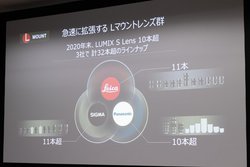 レンズはLマウントアライアンスにより、パナソニックだけではなくライカ、シグマのレンズも使用できる。2020年末に、パナソニックは10本超、ライカは11本、シグマは11本といったラインナップになる予定。