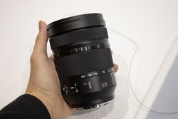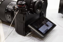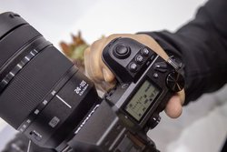 発表会の後には実際に製品を試すことができ、はじめに持った感想として、ボディの剛性感がしっかりと感じられた。グリップは少し浅めなものの、十分な本体サイズのおかげで大型のレンズを装着してもしっかりとホールドすることができた。本体重量やサイズ感の影響もあり、70-200mmのような大型のレンズであってもバランスが良く、非常に安定感があった。