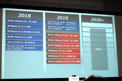 年末商戦のカメラ売り場を賑わせたEOS Rだが、同時に、数多く聞かれたのがRFレンズの拡充を望む声。戸倉氏も「EOS Rシステムの魅力を高めるためには、RFレンズのラインナップ拡充が重要」と開発中のRFレンズを紹介した。