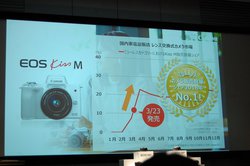 そして、「この大きな流れをつくった代表的なカメラが『EOS Kiss M』。昨春の発売以降、9カ月連続で売上1位を記録。2018年に最も売れたミラーレスカメラとなった。Kissブランドの主なユーザーであるファミリー層、主婦層だけでなく、写真コミュニケーションを楽しみたい若年層の心を掴み、エントリーカメラの定番としてのポジションを固めることができた。レンズ交換式カメラに新たなユーザー層を呼び込めたことは、カメラ業界にとっても大きな意義がある」とミラーレス市場拡大へのけん引役となった活躍をアピールした。