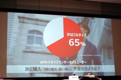 同社が11月に実施したアンケート結果によると、現在APS-Cカメラを使用しているユーザーのうち、買い替え・買い増しを予定する人の実に65%がフルサイズを希望する。しかし、フルサイズカメラの “重い” “高価” “難しい” といったイメージがステップアップを遠ざけていると指摘。その壁を打ち破るのが今回の新製品「EOS RP」。「まさにそうした方に提案できるカメラ。これまでフルサイズカメラを使っていなかった方にも、EOS RPでその魅力を伝えてフルサイズへの買い替えを促すことにより、フルサイズミラーレス市場においてもNo.1を目指す」と意気込む。