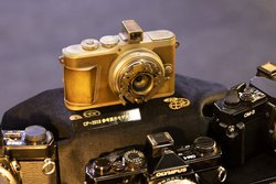 そして昨年に引き続き、発売の予定はないという試作機も出展。今年は真鍮を用いたOM-Dのコンセプトモデルが展示されていた。