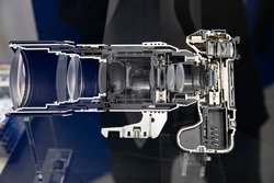 また参考出展として、2020年発売予定の望遠ズームレンズ「M.Zuiko Digital ED 150-400mm F4.5 TC 1.25x IS PRO」と、2019年9月発売予定のテレコンバーター「M.Zuiko Digital 2x Teleconverter MC-20」が展示。特に望遠ズームレンズの方は試作段階となっており、ここから見た目など変わる可能性もあるという。