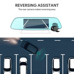 フロントカメラはミラー型となっており、6.8インチIPS液晶タッチパネルを採用。また防眩加工で後続車両のヘッドライトの眩しさを軽減する。ビデオ録画・再生、画面転換、画面輝度調整、録音オンオフ、映像ロックなどの各種操作が行えるほか、画面の上でスライド操作することで、前後カメラ、フロントカメラ、リアカメラの3つ視角を順番に切り替えることができる。