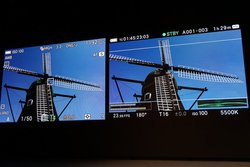 映画撮影の現場に役立つ機能としては、「ディレクターズビューファインダーモード」も挙げられた。これは映画監督が現場でレンズの画角などを確認するためのもの。スーパー35のみだったフィルム時代と比べ、デジタルでは多様なフォーマットが存在しており。本機能はそれをシミュレートする機能となる。「世界中の映画監督が求めていたもの」であり、この機能によって「(fpは)映画撮影の現場で必須になるだろう」と山木氏は語った。