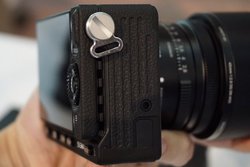 「スケーラブル」という点については、マウントに「Lマウント」を採用することで、パナソニックのLマウントレンズが組み合わせられるほか、マウントアダプターを使用することでライカのMレンズやRレンズなども装着できる。また、側面のストラップ取付部は取り外し可能となっており、外すと三脚穴と同じ仕様になっている。