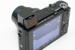 EVFや背面液晶モニターについてはRX100 VIと同等で、EVFは0.39型 235万ドット相当の有機ELを採用。ファインダーはポップアップ式を従来どおり採用し、ポップアップするだけで使用できるワンプッシュアクセスに対応する。背面液晶モニターは3.0型 921,600ドットのタッチパネルで、チルトにも対応。先述したようにタッチを用いたAF操作などに対応する。なおメニューはタッチ操作できない。