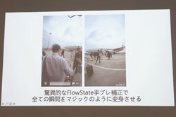 手ブレ補正として、同社の特徴である「FlowState」を本機にも搭載する。これにより、歩いている時、乗り物で移動している時、運動している時でも、ジンバル利用時のような安定した映像が撮影できるしている。最大100fpsのスローモーション撮影も可能。またハイパーラプス機能では1回の撮影で、最長30分・6倍速の撮影に対応する。