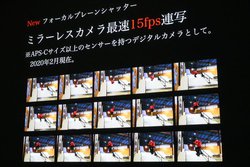 連続撮影では、ファインダー撮影時に8fpsのライブビュー連写にも対応。スポーツ撮影時など、連写しながら被写体の動きを確認できるため、「ほぼ一眼レフライクな連写感。8コマまでいくとプロのスポーツカメラマンでも使える」と上野氏はアピールしていた。