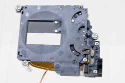 センサーの姿勢制御は、X-H1のコイルスプリングから磁力スプリングに変更。センサーの位置決めと姿勢制御に用いる磁石については、共通の磁石で行うことで、半分の3つに削減している。さらに、シャッターショックにも配慮。シャッターユニットは上下だけで保持していたX-H1から改良し、上下左右の5箇所に配置された4種類のスプリングで保持する構造となっている。