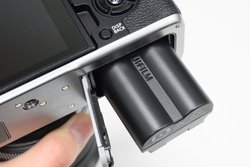 バッテリーは大容量タイプ「NP-W235」を採用することにより、エコノミーモードで約600枚、ノーマルモードで約500枚の撮影に対応する。オプションとして2個のバッテリーを搭載できるグリップも用意し、エコノミーモードで最大約1,700枚の撮影も可能となっている。