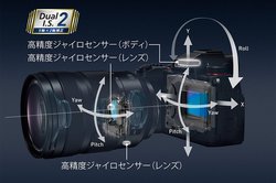 5軸ボディ内手ブレ補正を搭載し、本体のみで5.0段、レンズ内手ブレ補正と協調するDual I.S.2により6.5段の補正に対応。ファインダーは0.74倍/236万ドットのOLEDで、フレームレートは60/120fpsを切替できる。表示タイムラグは0.005秒となり、アイポイントは20mm。また、背面のタッチ液晶は184万ドットのフリーアングルモニターで、高輝度広色域を採用する。