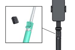 約330mmの伸縮ロッドを備え、本体には、シャッター操作やズームイン/アウト、縦向き/横向きの切り替えなどの操作が行える、着脱可能なBluetoothリモコンを付属。自撮り棒のような使い方はもちろん、グリップ部を展開すれば、リモコン付きのスマートフォン用三脚としても使用できる。