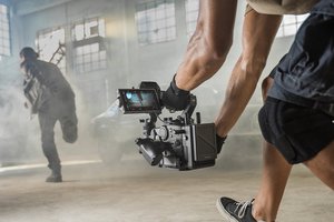世界初だという4軸のジンバルを搭載するシネマカメラ。通常の3軸ジンバルに加えてZ軸の安定化機構を搭載することで、垂直方向のカメラの揺れを効果的になくすという。これにより、走ったりする場合や階段などの凹凸においても、歩行からの揺れの影響を抑えた映像が撮影できる。