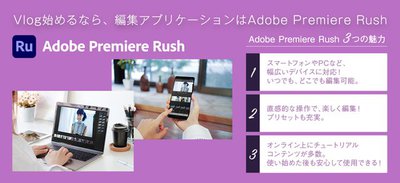 特典2では、ソフトウェア「Adobe Premiere Pro」の3ヶ月無料版をプレゼント。Adobe Premiere Proには、Vlog編集におすすめとする編集アプリ「Adobe Premiere Rush」も含まれる。応募完了後、翌日以降にダウンロード手続き用のURLが送られる。