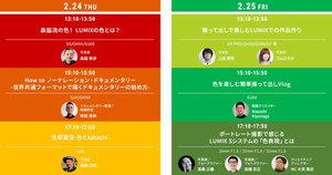 ほか、会期前日となる2月23日には、前夜祭ライブ配信を実施予定。マーケティング担当社とゲストクリエイター(ギュイーントクガワ氏、エマーク氏)がブースの狙いやコンセプトに触れながら、ライブ配信でLUMIXブースを紹介していくという。