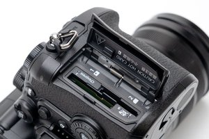 ほか、メディアスロットにはCFexpress type BとSDのデュアル構成を採用する。端子ではHDMI AやPD対応のUSB Type-C(USB 3.2)、マイク端子、ヘッドホン端子などを備える。またシンクロターミナルからBNC変換でタイムコード同期が行える。外形寸法は138.4×100.3×99.6mm。