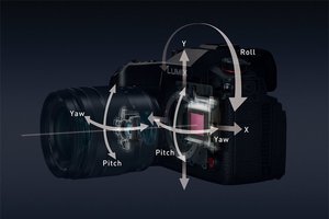 5軸手ブレ補正システムを搭載、LUMIX最高の補正段数7.5段に対応する。新たな超高精度ジャイロセンサーを採用しており、これを活かす新アルゴリズムを採用している。センサーシフトによる1億画素のハイレゾ撮影では、手持ち撮影にも対応。連写性能も進化し、AFS/メカシャッターで最大14コマ/秒、AFS/電子シャッターで最大75コマ/秒に対応する。
