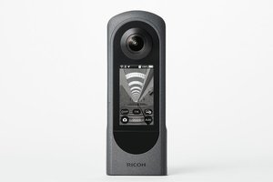 本体に2.25型の大型タッチパネルモニターを搭載する360度カメラ。ソフトウェアとクラウドサービスを組み合わせた「RICOH360」プラットフォームのエッジデバイスとして主にビジネス向けに展開するが、一部量販店でも取り扱いを予定しており、一般のユーザーも購入できるという。