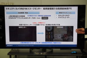 ドライブレコーダーなどでよく聞く、ソニーの「STARVIS(スターヴィス)」。セキュリティカメラ用に開発された独自の裏面照射型画素技術だ。これを活用して暗闇でもきれいな撮影ができる、1/1.2型4K解像度CMOSイメージセンサー4Kイメージセンサー「IMX585」が披露された。