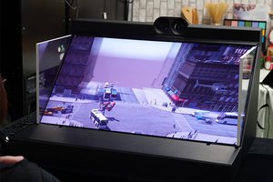 活用例として、裸眼で3D映像を見ることができる空間再現ディスプレイでの使用デモが行われた。同センサーによる裸眼3Dディスプレイは、ソニーより15インチ/4Kサイズ「ELF-SR1」 として既に量産されている。合わせて、開発中という32インチ/8Kモデルも展示された。