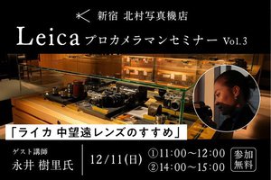 カメラのキタムラ 新宿 北村写真機店は、「Leica(ライカ)の魅力を伝えるプロカメラマンセミナー」を2022年12月11日(日)に開催する。