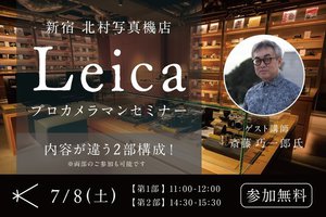 キタムラは、カメラのキタムラの旗艦店「新宿 北村写真機店」にて、LEICA(ライカ)の魅力を伝える「ライカプロカメラマンセミナー」を2023年7月8日(土)に開催する。
