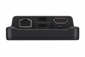 端子類はデータ転送用と充電用にUSB Tyep-Cを2基装備し、本体をモバイルバッテリー等で充電しながら使用することができる。ほかに入力端子として、映像伝送が可能で外部モニターとしても使用できるHDMI Type-A×1基、データ転送が可能なLAN端子×1基を備える。