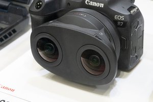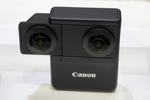 キヤノンは参考出展として3つのVR/3D向けの製品を展示した。会場に展示されていたのは動かないモックとのことだが、発売に向けて動いている途中とのことだ。
