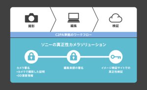 同社は昨年、改ざんされた画像やAIが生成したフェイク画像のまん延といった課題を対処するためのカメラ技術開発の取り組みを発表していた。そしてこの度、C2PA(デジタルコンテンツの出所と信ぴょう性に対し、オープンスタンダードと技術仕様を策定する標準化団体)規格対応とソニー独自のデジタル署名技術によって、画像の真正性を検証するカメラソリューションの提供を開始する。