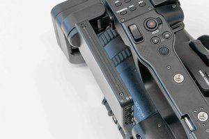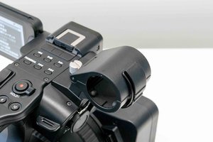 今後のアップデートでアサインが可能となるため、例えばフォーカスはオートで任せ、レンズリング部にズーム/アイリスを割り当てるといったカスタムができる。業務用カムコーダーは3連タイプのモデルが多いが、2連リングにすることで小型化に寄与しており、また同社のオートフォーカス性能を最大限に活かした操作が可能だとアピールしていた。