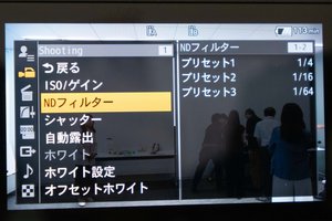 バリアブルのNDフィルターは、ワンボタンで「NDオート」に設定でき、明るさに応じてNDフィルターによる効果が自動的に掛かることで、明暗差が激しい場所においてもスムーズな撮影を実現する。