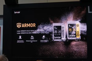 Lexarは自らのブース内で発表会を実施。このなかで、世界初のステンレス(316ステンレススチール)採用のSDメモリーカードを発表。耐久性を特徴とする “Lexar ARMOR” シリーズからのラインナップとなり、「ARMOR GOLD SDXC UHS-II」と「ARMOR SILVER PRO SDXC UHS-II」を用意する。どちらも容量は、1TB、512GB、256GB、128GB、64GB。