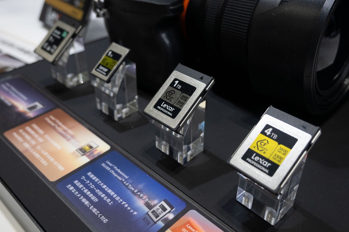 またLexarもSUNEAST同様、これからの普及が期待されるCFexpress 4.0 Type Bカードを参考出品。年内の発売を予定しているそうだ。また、microSDXC Expressといった最新規格対応のカードも並べられている。