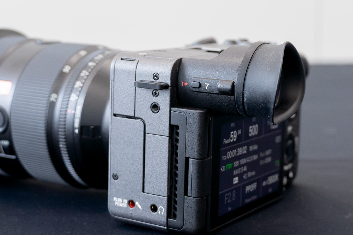 本体はマグネシウム合金製。前面、背面部にREC忘れ/逆RECを防ぐタリーランプを装備する。グリップ形状はより握り込みが効くデザインに。冷却ファンについても配置を変更し、モニターを閉じても上下に放熱口がある形にレイアウトを刷新。僅かな段差を設けることで、雲台のクイックシューを装備した状態でも隙間が空くように設計されている。底面の三脚用ネジ穴も1箇所追加。カスタムボタンについても、FX3/FX30から一箇所追加され、計7個を備える。