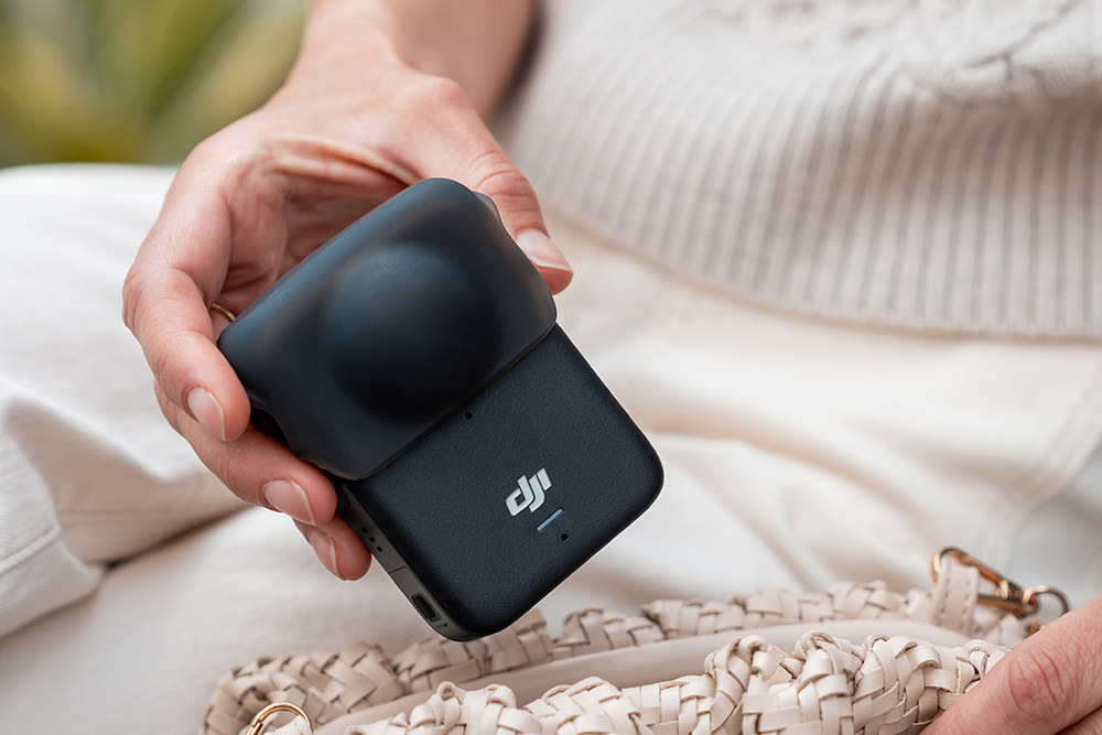 背面には解像度314x556、輝度800cd/m2の2.0型タッチディスプレイを装備。底面には磁気クイックリリース機構や1/4インチネジ穴を備え、同社アクションカメラ “Osmo Actionシリーズ” のアクセサリーなどを接続できる。ストレージは128GBを内蔵し、microSDカードスロットも1基搭載する。