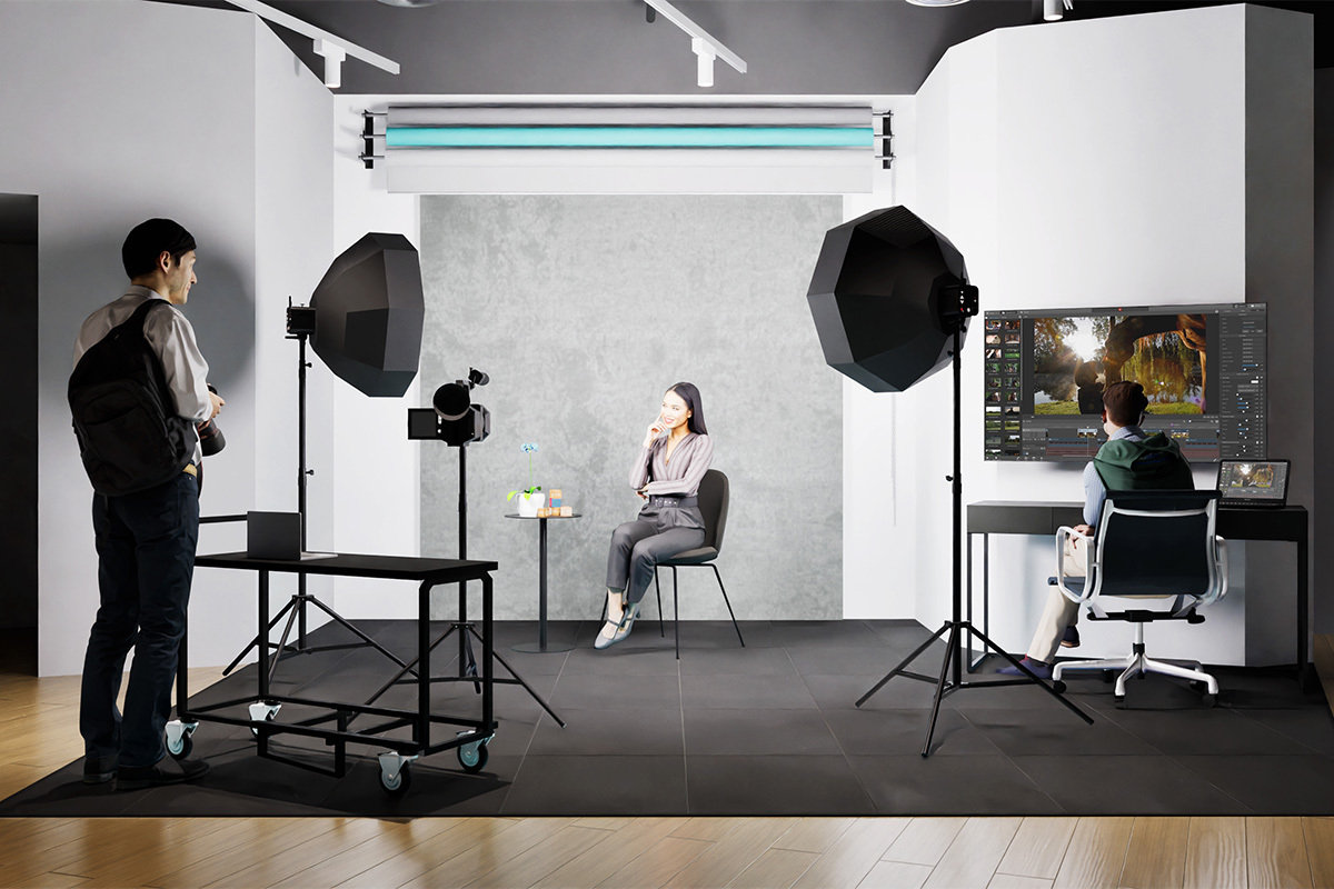 Shooting Studioはライトなどの周辺機材を揃え、インタビューやポートレートの撮影などを想定した実際のユースケースに近い環境でじっくり撮影を試すことができる。また、モニタリング/マルチカメラ運用時に便利なソフトウェア「Monitor & Control」のほか、編集コーナーでは撮影した素材をその場でタイムラインに流したり、カラーグレーディングをしたり、動画編集も体験できる。