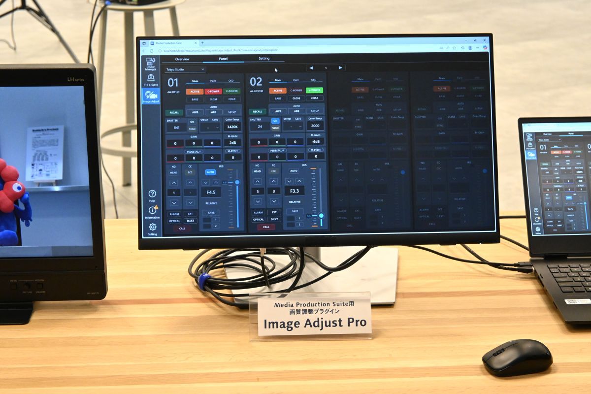 Media Production Suite用画質調整プラグイン「Image Adjust Pro」は、最大20台のスジオカメラ、リモートカメラに同時接続した一元操作・管理を実現。PCやタブレットなどさまざまな端末からリモート制御が可能で、場所やスペースに縛られた運用から解放する。ハードウェア風レイアウトや編集ソフト風レイアウトなど、ソフトウェアの強みを活かした柔軟な操作性を実現するとのこと。