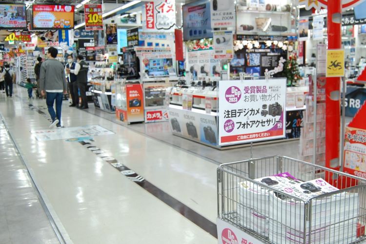 専門性に明るい親しみやすさが融合したカメラコーナー。「DGPイメージングアワード2023」のお買い物ガイドも