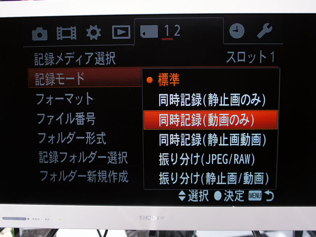 記録モードの選択メニュー