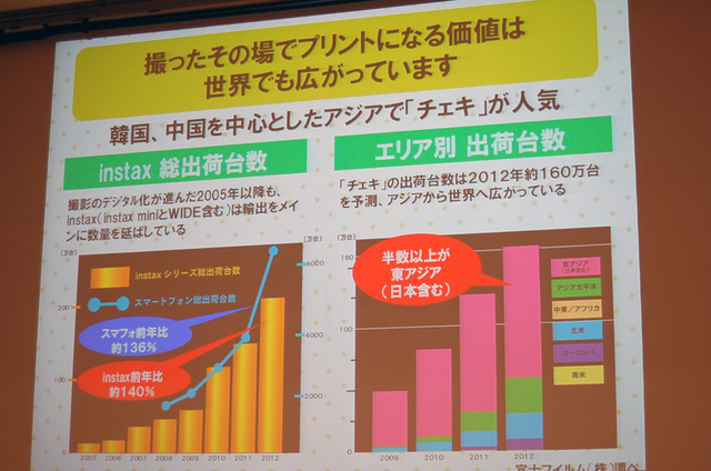 韓国や中国などでも人気の高まる「チェキ」。ひとつの“コミュニケーションツール”として捉えられ、写真店や量販店のみならず、コスメショップ、書店、携帯電話ショップ、バラエティショップ、コンビニエンスストアなど様々な業態で販売されている