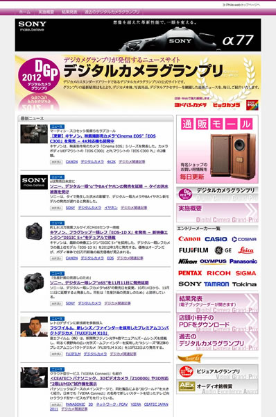 デジカメ関連ニュースもチェック可能