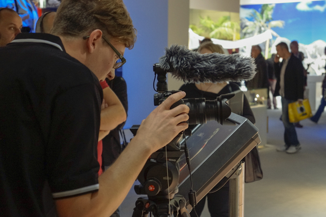 オプションのガンマイクを装着しての動画撮影のデモを展開。画質だけでなく高音質であることもアピール